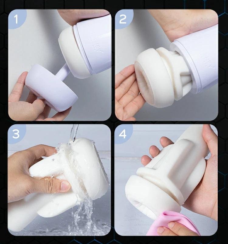 Esta avanzada máquina de mamadas masturbadora masculina es una versión mejorada del Kai, y viene con una copa de mayor circunferencia, un túnel extendido y un orificio texturizado más ancho para adaptarse a la mayoría de los tamaños de pene. Las mayor densidad de perlas en relieve en el interior mejoran la estimulación del pene.
