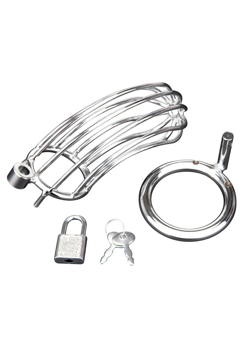 El dispositivo de castidad Prisoner Cock Cage ofrece la máxima comodidad y seguridad. Los anillos constan de tres piezas entrelazadas que encajan entre sí. Dos pasadores guía mantienen unidas las piezas superiores. El pasador de bloqueo ovalado atraviesa el orificio central que conecta la jaula con el anillo. Cada paquete incluye anillos y espaciadores de varios tamaños para personalizar el ajuste. Evita tocarse los genitales para obtener placer sexual y permite al usuario controlar la satisfacción sexual.