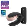 El Satisfyer Double Love se puede controlar a través del control remoto inalámbrico incluido, así como mediante la aplicación gratuita Satisfyer Connect. Gracias a la aplicación podrás descubrir una nueva faceta de la vida sexual en pareja: Además de poder controlar a distancia el dispositivo de placer, también puedes crear tus propios programas de vibración o iniciar sesiones de chat de audio y vídeo. ¿A qué estás esperando? Además, como el vibrador para parejas tiene un acabado impermeable (IPX7), también contribuye a enriquecer los juegos eróticos bajo la ducha o en la bañera con vibraciones calientes. Si el vibrador para parejas se queda sin aliento, las baterías integradas se pueden recargar mediante el cable de carga USB incluido.