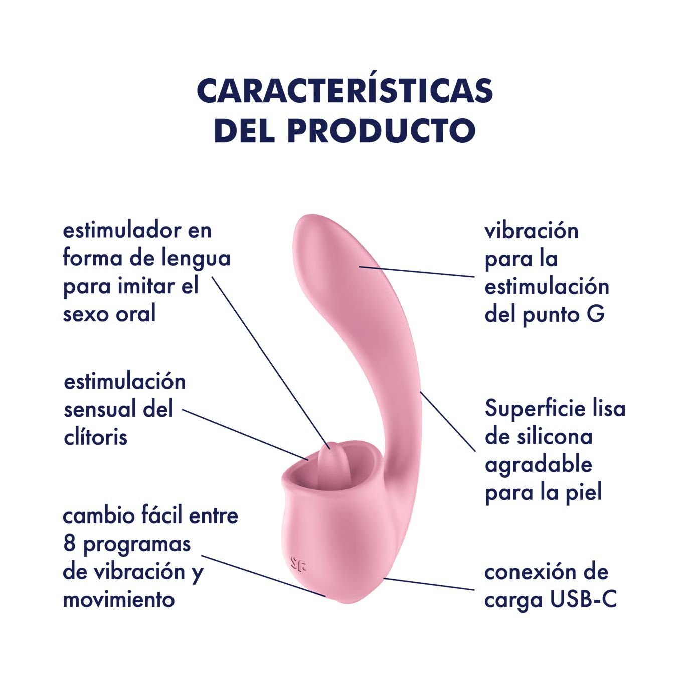 | 8 modos de lamido y 8 programas de vibración | Recargable a través de USB-C |