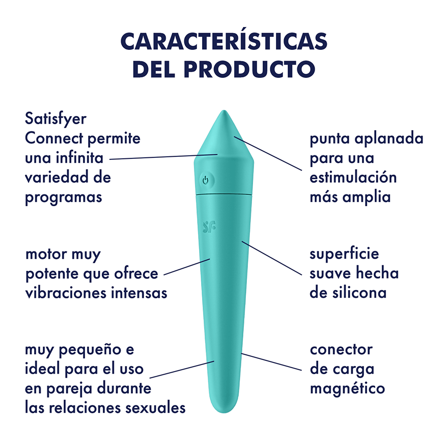 Con su extravagante aspecto, el Satisfyer Ultra Power Bullet 8 no solo destaca visualmente, sino que también aporta variedad a tus relaciones sexuales: utiliza su punta estrecha para una estimulación precisa del clítoris o deja que su superficie inclinada acaricie tus puntos más sensibles de forma más amplia. A pesar de su delgada estructura y su práctico tamaño, este mini vibrador, al igual que todos los Satisfyer Ultra Power Bullet, ofrece potentes e intensas vibraciones con 5 velocidades y 7 patrones de vibración, que también se pueden controlar a través de la aplicación Satisfyer Connect.