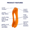 Su cuerpo, hecho de silicona segura para el cuerpo, tiene espectaculares tonos de naranja y detalles de plástico pulido. Puede disfrutar de su Candy Cane en la ducha, es resistente al agua IPX7. Es recargable por USB y su motor es muy silencioso.