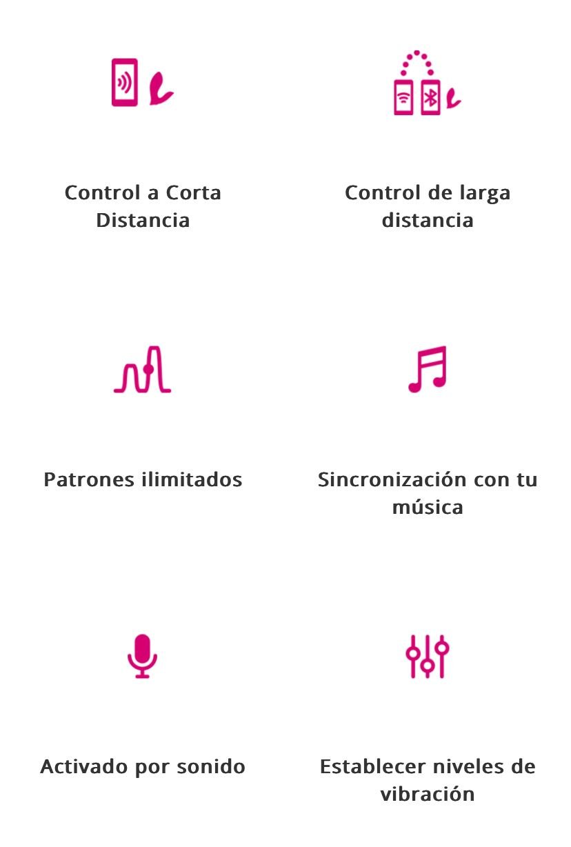 Presionar el botón de encender del FLEXER por algunos segundos hasta que emita una pequeña vibración y tengas una luz intermitente, luego podrá conectarlo a su aplicación (Lovense remote) donde deberás seleccionar el símbolo de enlace para conectarlo. Para disfrutar de todas sus funciones, se introduce la extremidad más gruesa poco a poco hasta obtener la estimulación deseada. Patrones ilimitados, crea, descarga y comparte patrones de vibración. Vibraciones con base en música, sincronice el aparato con su música favorita. Activación por sonido, nuestra app usará el micrófono de teléfono celular y vibrará con base en los sonidos que se escuchen a su al rededor. Permite un alcance del control de hasta 9 metros o ilimitada con conexión wi-fi.